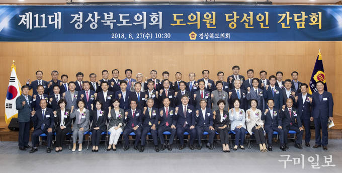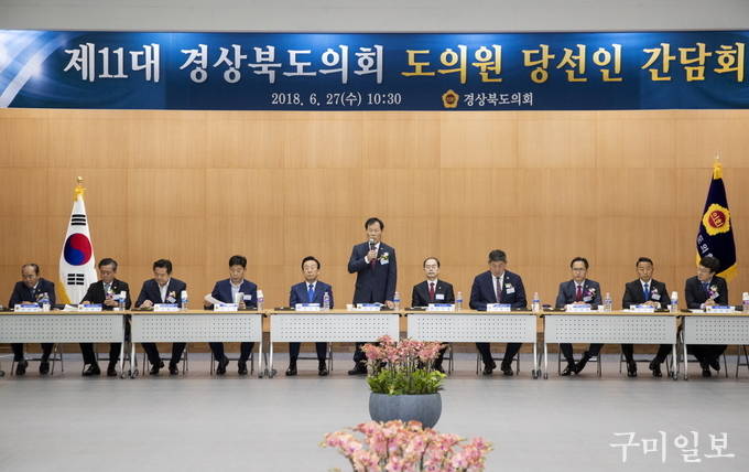 제11대 경상북도의회 의원 당선인 간담회가 2018년 6월 27일(수) 오전 10시 30분 경북도청 4층 화백당에서 도의원 당선인(60명)과 김관용 도지사, 전우홍 부교육감, 의회사무처장 등 150여명이 참석한 가운데 열렸다.