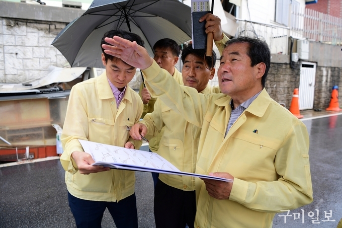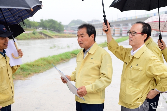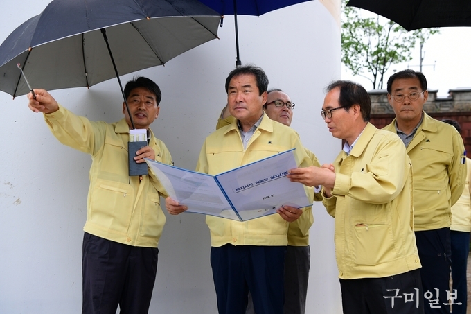 먼저, 과거 김천시가 태풍피해를 겪었던 경북선 철도가도교, 용암배수펌프장을 점검하고, 이어서 직지천고수부지 주차장, 직지가동보, 황산협착부 현장, 남산지구 급경사지 현장, 성내동 배수지 등 취약시설과 공사현장을 차례로 점검하면서 관계자들에게 격려와 함께 철저한 안전관리를 당부했다.