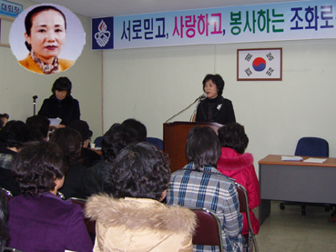 이번 정기총회는 2008년 예산 및 사업 결산보고, 2009년 사업계획 승인, 사랑의봉사회장 선출 순으로 진행되었다. 지난 6년간 사랑의봉사회를 이끌어 온 한경자 전임회장은 60여명 회원의 적극적인 협조와 관심으로 무사히 임기를 마칠 수 있었다며, 회원들의 노고를 격려하였으며 앞으로 사랑의봉사회가 더욱더 많은 사랑을 나눌 수 있는 단체로 발전하기를 기대하며 작은 힘이나마 보탬이 될 수 있다면 후진에서 지원을 아끼지 않겠다고 하였다. 기축년 새해부터 새로이 사랑의봉사회를 이끌어 갈 박순희 신임회장은 전임회장을 비롯한 임원들의 노고에 깊은 감사를 드리며 그동안 쌓아올린 업적에 누가 되지 않도록 열심히 노력하겠다며 회원들의 적극적인 동참을 부탁하였다. 박희규 새마을과장은 전임회장의 노고를 격려하고 신임회장에게 축하의 말씀을 전하면서 어려운 이웃들에게 나눔 실천을 통하여 행복한 도시, 밝고 건강한 사회 건설에 앞장서 줄 것을 당부하였다. |