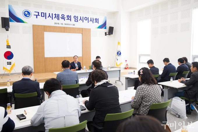 구미시체육회(회장 장세용)는 10. 16(수) 새마을테마공원 연수관 대회의실에서 부회장, 이사 등 체육회 임원들이 참석한 가운데 임시이사회를 개최했다.