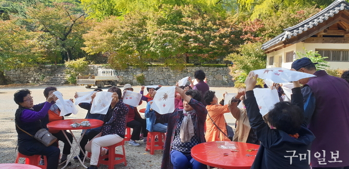 이 날 30여명의 어르신들은 먼저 죽장사에 들러 국보 제 130호로 지정된 오층석탑의 유래와 오누이 탑에 얽힌 이야기를 들었으며, 다음으로 무을면의 수다사로 이동하여 사찰 건축물에 숨겨진 과학 원리를 주제로 설명을 듣고, 컵으로 탑 쌓기 게임, 한방약재 방향제 만들기, 오색단풍잎으로 손수건 염색하기 등 다채로운 과학체험 활동에도 적극 참여하였다.