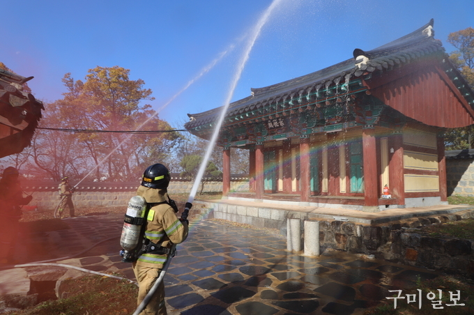구미소방서장 김재훈은 “목조문화재는 화재가 발생할 경우 화재 최성기까지 도달하는 시간이 짧다.”며 “화재 발생 시 신속한 대응이 필요하다.”라며 합동소방훈련의 중요성을 강조했다.