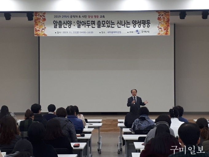 구미시는 11월 22일 오후 2시 새마을테마공원 글로벌관 1층다목적홀에서 사회복지시설종사자 60여명이 참석한 가운데 양성평등교육을 실시했다.