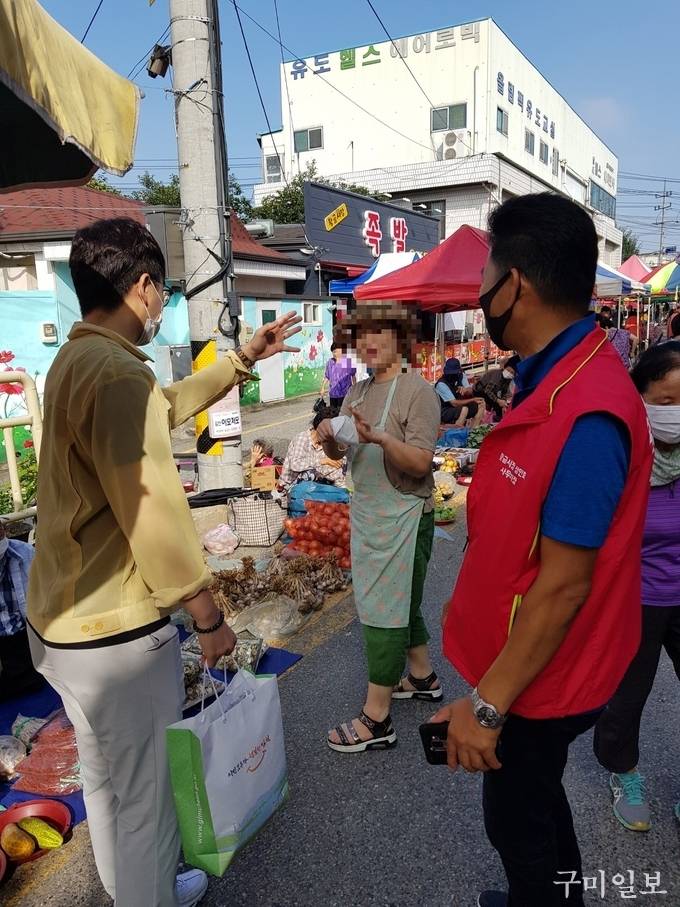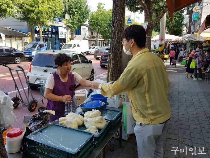김천시(시장 김충섭)와 평화·황금시장 상인회에서는 장날을 맞아 타 지역 노점상과 인근 주민의 유입에 따른 코로나19 재발생에 대비하고자 사전 계도 활동을 적극 실시했다.