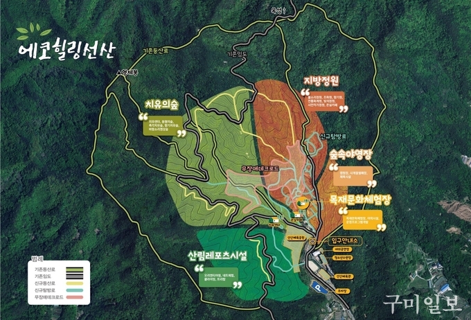 농촌 지원을 위해 농업 분야에만 집중하는 기존 방식에서 벗어나, 최근 트렌드인 자연 속 힐링과 체험에 포커스를 맞춘 농촌휴양공간 확충 분야로도 시야를 넓혔다. 올해 치유의숲 공모 선정을 시작으로 선산 산림휴양타운 조성을 본격적으로 추진하고, 산림욕장, 반려동물 문화공원 추진, 유아숲체험원 활성화에 힘쓰며 사람이 찾아오는 활기찬 농촌 조성을 위해 노력하였다. 그 결과 경상북도 산림산업관광분야에서 최우수 기관으로 선정되며 구미 농촌이 경북 대표 관광명소로 재탄생하기 위한 발전가능성을 대내외에 입증하는 계기가 되었다.
