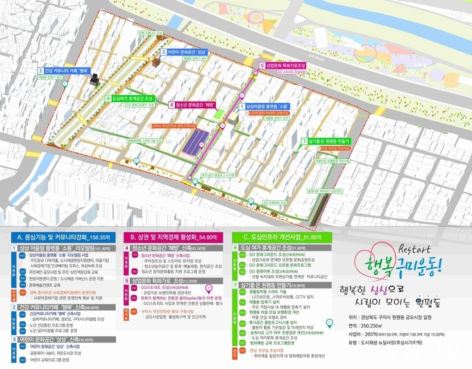 원도심 재생, 복합시설 개발, 문화적 도시재생 등 구미형 도시재생 프로젝트를 통해 시민 주도의 도시혁신을 가속화하고, 「도시바람길숲」, 「들성산림공원」 조성과 「이계천 통합·집중형 오염지류 개선사업」 등 생활권 내 녹색 휴식공간을 확충하며 도시의 정주여건도 높인다.