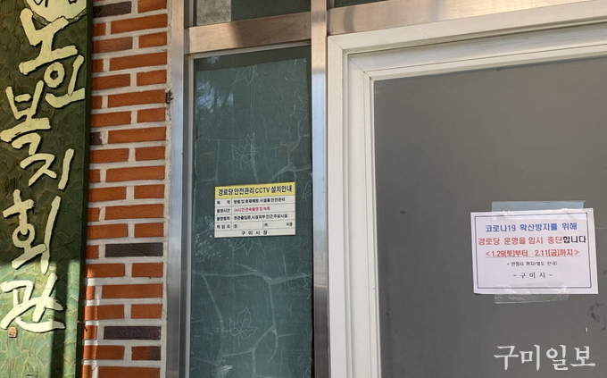 구미시(시장 장세용)는 최근 코로나19 확산을 예방하기 위해 1월 29일(토)부터 2월 11일(금)까지 14일간 경로당 413개소 운영을 임시 중단하기로 했다.