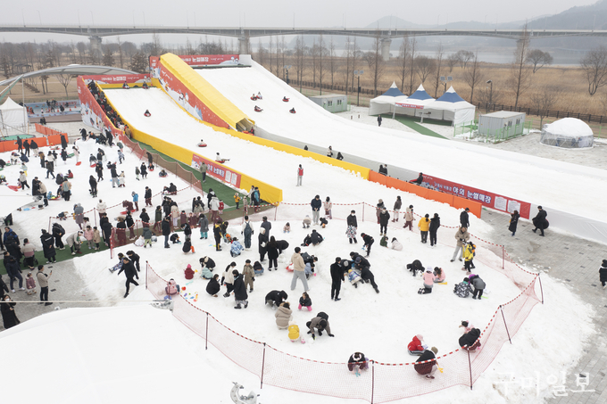 특히, 올해는 방문객의 선호도를 반영해 성인용(폭 15m)과 어린이용(폭 10m) 슬라이드를 통합한 폭 20m, 길이 75m, 높이 7.2m의 대형 눈썰매 슬라이드를 새롭게 선보인다. 또, 지난해 설문조사에서 요청이 많았던 스케이트장을 새롭게 선보여 방문객들의 기대를 모으고 있다. 회전튜브 썰매와 눈동산 에어바운스 등 색다른 체험 프로그램도 추가돼 다양한 즐길 거리가 마련됐다.
