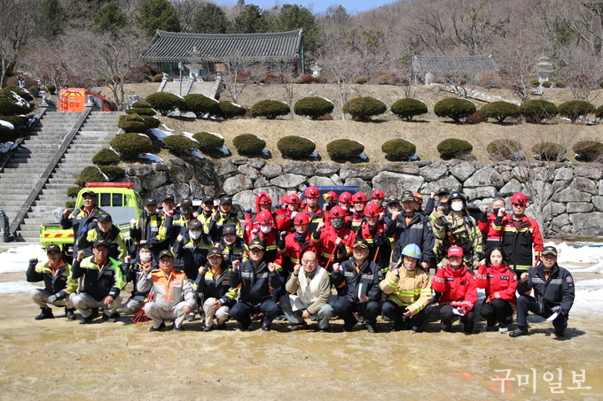 김천소방서(서장 안영호)는 3월 20일(목) 오전 11시, 수도암에서 문화유산 보호 및 산불 대응태세 강화를 위한 합동소방훈련을 실시했다.