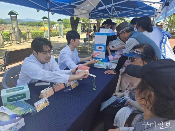 이번 행사에는 구미시 치과의사회, 경운대학교·구미대학교 치과위생과 등 전문가 단체와 지역 대학이 함께 참여해 구강검사, 칫솔질 교육, 입속 세균 검사 등 맞춤형 구강건강 서비스를 제공했다. 특히 바쁜 일상 속에서 구강 관리가 소홀해지기 쉬운 시민들을 대상으로 한 구강 건강 점검은 큰 호응을 얻었다.