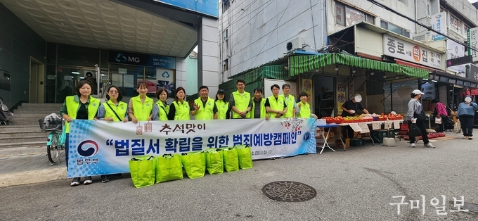 법무부(장관 정성호) 구미보호관찰소 협의회는 지난 10월 2일 구미시청 후원으로 구미중앙시장에서 지역사회 범죄예방과 준법의식 확산을 위한 캠페인을 전개했다.