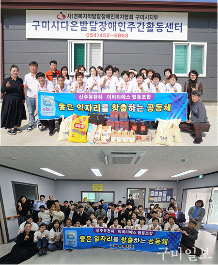 EBTS협동조합(이사장 이승원) 산하 구미옥계지국(센터장 황인해 외 보직자 및 조합원 일동)이 지난 10월 20일(월), 경상북도지적발달장애인복지협회 구미시지부를 방문해 따뜻한 나눔의 손길을 전했다.