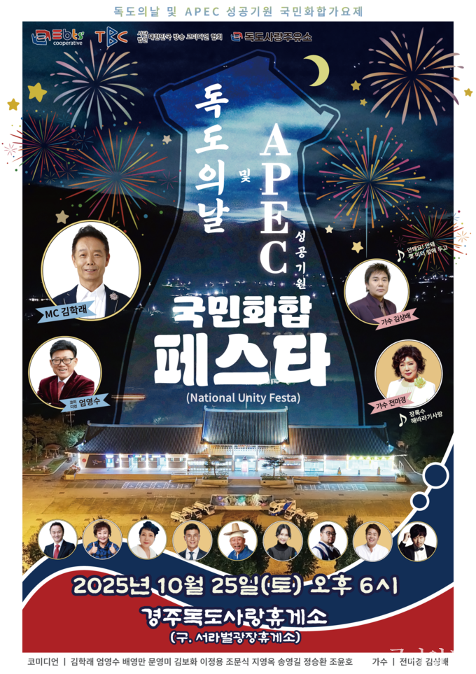 행사 관계자는 “독도의 날을 기념하고 APEC 성공 개최를 기원하는 의미 있는 자리로, 국민 모두가 하나 되어 함께 즐길 수 있는 축제가 될 것”이라고 전했다.