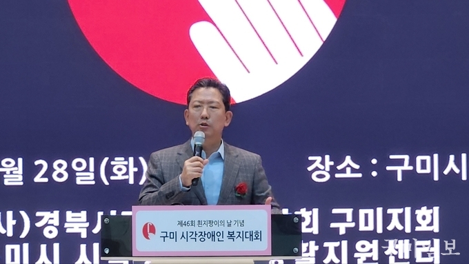 김장호 구미시장은 축사에서 “흰지팡이의날을 맞아 시각장애인 여러분의 열정과 도전에 깊이 감사드리며, 누구나 불편없이 살아 갈 수 있는 무장에 도시 구미를 만들어가겠다고 말했다. 이어서 김일근 경북시각장애인연합회장의 격려사와 경상북도의원, 시의원의 축사로 이어졌다.