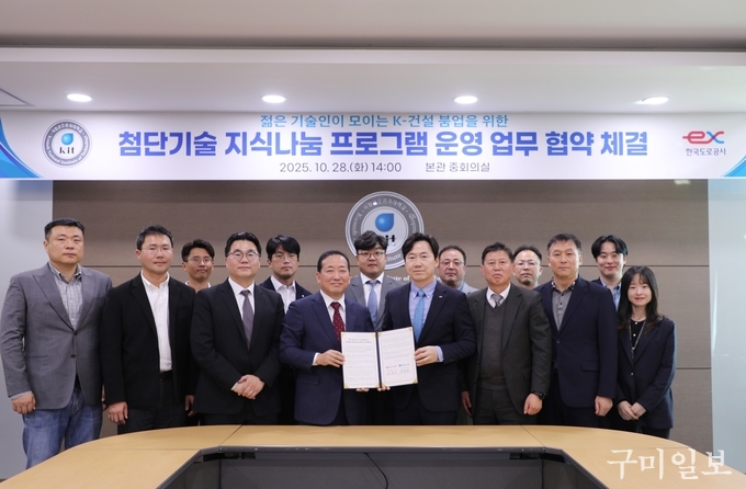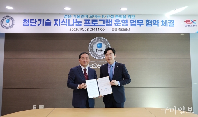 양 기관은 10월 28일 국립금오공대 본관 중회의실에서 ‘첨단기술 지식나눔 프로그램’ 추진을 위한 업무협약을 체결했다. 협약식에는 곽호상 국립금오공대 총장과 윤한수 한국도로공사 건설본부장을 비롯해 국립금오공대 김우석 입학처장, 이승엽 건축토목환경공학부 학부장, 김진우 건축공학전공장, 노성진 토목공학전공장, 손영규 환경공학전공장, 한희수·김성겸 토목공학전공 교수, 그리고 한국도로공사 강경돈 설계처장, 배성귀 구조설계부장이 참석했다.