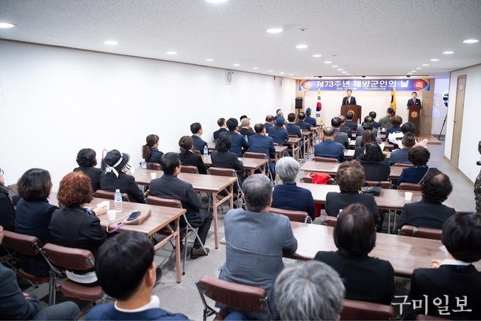 구미시재향군인회(회장 최종국)는 지난 27일 향군회관 다목적 강당에서 김장호 구미시장, 조병근 구미대대장, 보훈단체장을 비롯한 향군회원 등 100여명이 참석한 가운데 『제73주년 재향군인의 날』 기념행사를 개최했다.