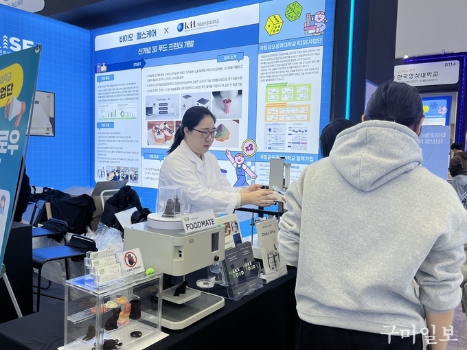 RISE사업단은 3D 푸드프린터 기술을 보유한 ㈜엘에스비(대표 이산홍), 그리고 모션분석 〮및 거리계측, 위치인식 분야의 핵심 기술로 CES 2025 혁신상을 받은 ㈜엑스빅(대표 김태연)과 함께 엑스포에 참가해 대학과 기업 간 협력 성과를 소개했다. 국립금오공대는 현재 ㈜엘에스비와 제품 고도화 연구를 통해 핵심기술성능 및 시장경쟁력 향상에 주력하고 있으며, ㈜엑스빅과는 혁신적인 제품 개발과 상용화 추진으로 지역산업의 지속가능성 및 기술자립 기반 강화에 기여하고 있다.