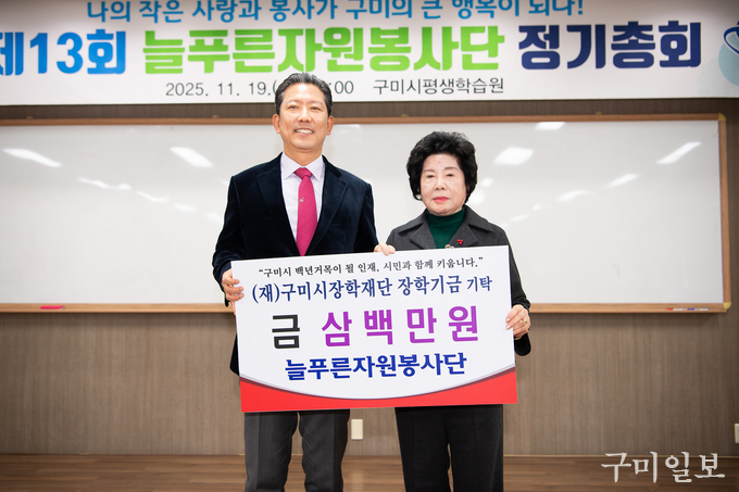 한편 늘푸른자원봉사단은 구미시평생학습원 늘푸른학교 과정 수료생들이 ‘배운 것을 지역에 환원한다’는 취지로 2014년 결성한 단체다. 현재 약 200여 명의 회원이 환경정화, 불우이웃돕기, 장학기금 기탁 등 다양한 사회공헌 활동을 꾸준히 전개하며 지역사회에 온정과 희망을 전하고 있다.