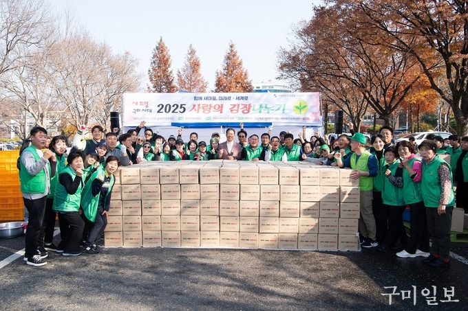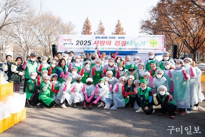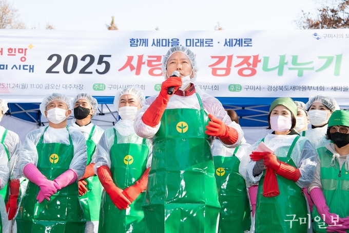 구미시는 11월 24일 구미시새마을부녀회(회장 서경희) 주관으로 『2025 사랑의 김장나누기』 행사를 열고 지역 내 취약계층 가정을 위한 김장을 마련했다. 금오산대주차장에서 진행된 행사에는 새마을부녀회뿐 아니라 새마을지도자구미시협의회, 청년새마을연대 등이 함께 참여해 나눔의 의미를 더했다.
