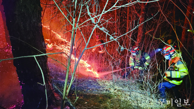 이에 경북소방본부는 산림 인접 지역의 영농 부산물 등 불법 소각 예방을 위해 홍보 방송·사이렌 취명 등 순찰 활동을 강화하고, 산불 발생 시 신속 대응을 위해 소방서 산불신속대응팀과 의용소방대 산불지원팀으로 구성된 ‘소방산불진화대’를 운영해 산불의 주불 및 잔불을 즉시 진화할 수 있도록 대비하고 있다.