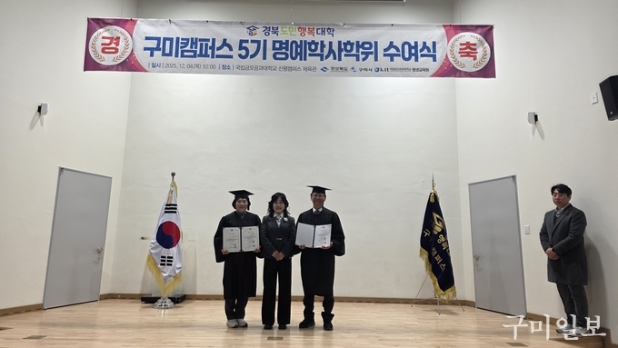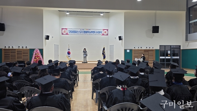 구미시는 지난 4일 국립금오공과대학교 신평캠퍼스 체육관에서 ‘2025년 제5기 경북도민행복대학 구미캠퍼스 학위 수여식’을 가졌다.