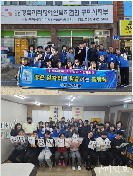 EBTS협동조합 구미옥계지국(센터장 황인해)은 12월 9일, MOU를 체결한 경북지적발달장애인복지협회 구미시지부를 방문해 떡국과 과일을 정성껏 준비해 점심식사를 대접하는 따뜻한 나눔 봉사활동을 진행했다. 이번 행사에는 구미옥계지국 보직자와 조합원들이 함께 참여해 더욱 의미를 더했다.