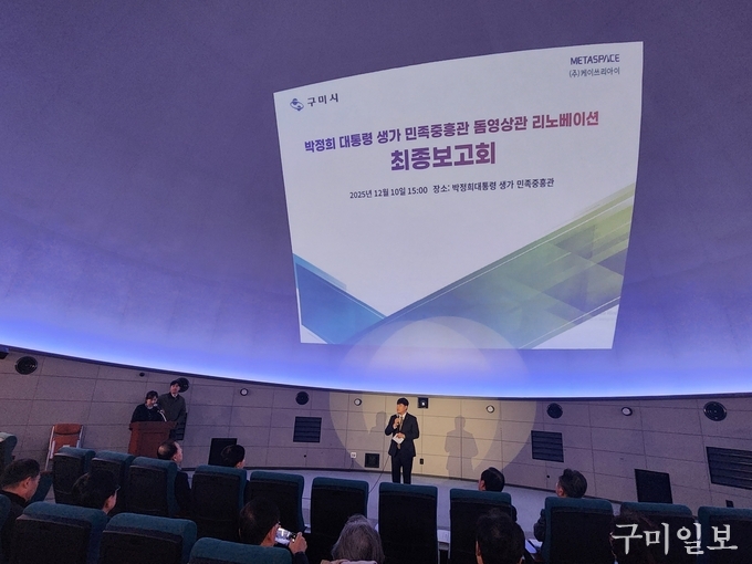 구미시가 박정희대통령 생가 민족중흥관 내 돔영상관을 최신 기술이 적용된 첨단 몰입형 영상관으로 재탄생시켰다. 시는 10일 현장에서 ‘돔영상관 리노베이션 용역 최종보고회’를 열고 새롭게 단장한 시설과 첫 상영 콘텐츠를 공개했다. 오래된 영상시설의 한계를 넘어, 관람객들이 한 번 더 찾는 공간을 목표로 한 전면 재정비다.