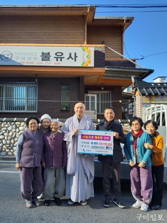 선산읍에 위치한 (사)자비명상 구미지부 불유사(佛乳寺)는 2024년 장학금을 비롯 2025년에는 총 209포(700만원 상당)의 쌀을 후원하여 지역사회 나눔에 꾸준히 앞장서고 있다.
