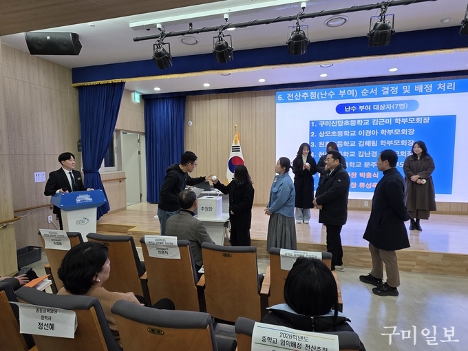 경상북도구미교육지원청(교육장 민병도)은 6일(화) 오후 2시에 구미교육지원청 1층 다목적강당에서 ‘2026학년도 중학교 입학 배정’을 위한 전산추첨을 실시했다.