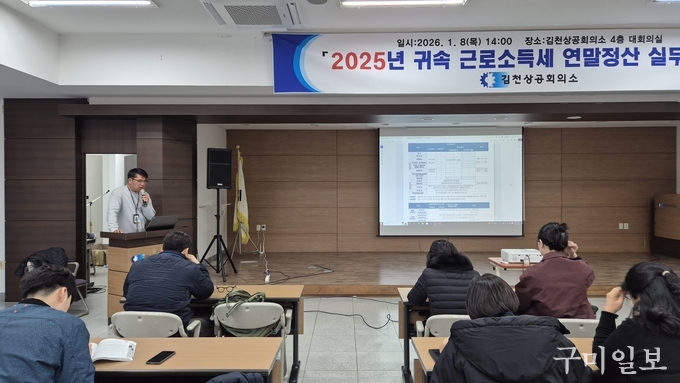 김천상공회의소(회장 안용우)는 김천세무서와 공동으로 지난 1월 8일 오후 2시 4층 대회의실에서 「2025년도 귀속근로소득세 연말정산 실무 교육」을 실시했다.