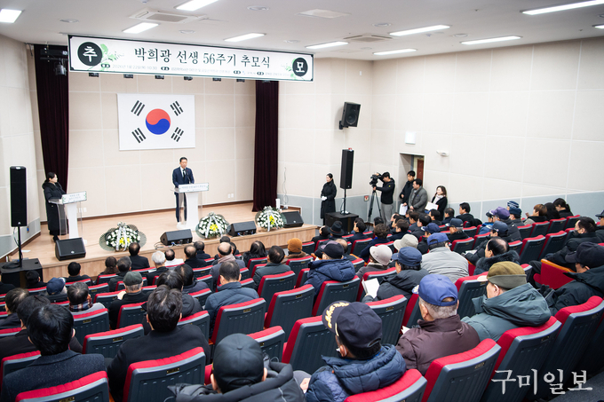 구미시는 22일 성리학역사관 야은관과 금오산 박희광 선생 동상 앞에서 「애국지사 박희광 선생 제56주기 추모식」을 광복회 구미시지회(지회장 김영수) 주관으로 거행했다.