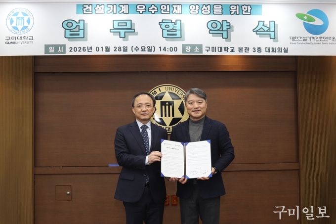 구미대학교(총장 이승환)와 대한건설기계안전관리원(원장 한동민)이 우수 인재 양성을 위해 손을 맞잡았다.