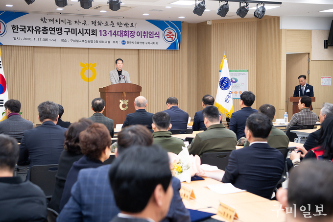 한국자유총연맹 구미시지회는 지난 27일 구미칠곡축협 3층 대회의실에서 제13·14대 회장 이·취임식을 개최했다. 이날 행사에는 이동영 한국자유총연맹 경상북도지부 회장과 김장호 구미시장을 비롯해 회원과 내빈 등 200여 명이 참석했다.
