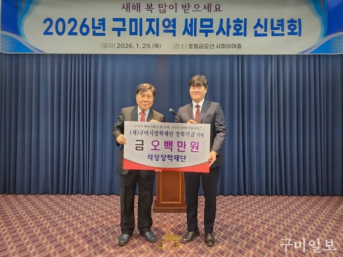 정성현 구미시 부시장은 “지역 인재 육성을 위해 따뜻한 나눔을 실천한 석성장학재단과 구미지역세무사회에 깊이 감사드린다”며 “고향사랑기부 활성화를 위한 지속적인 참여에도 감사드리며, 기탁된 장학금은 지역 학생들에게 실질적인 도움이 되도록 소중히 사용하겠다”고 말했다.