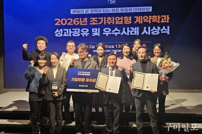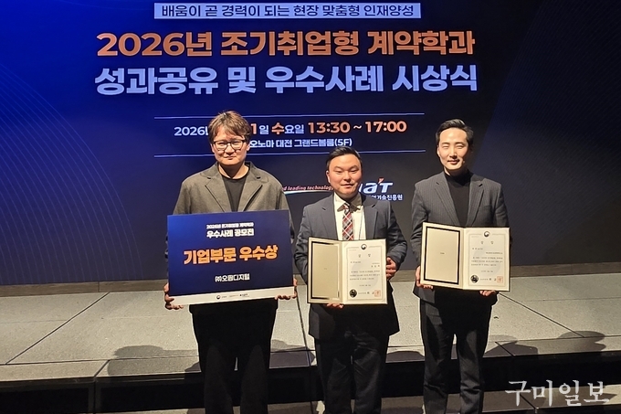 구미대학교(총장 이승환)가 교육부와 KIAT(한국산업기술진흥원)이 공동으로 주관한 2026년 조기취업형계약학과 우수사례 수기 공모전 학생부문 및 기업부문에서 대상을 모두 차지했다.
