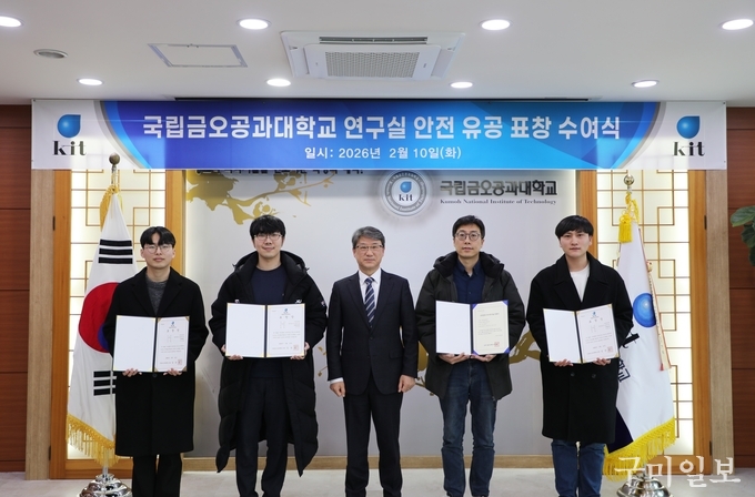 국립금오공과대학교(총장 김상호)의 의료융합실험실이 ‘안전관리 최우수 연구실’로 선정돼 부총리 겸 과학기술정보통신부장관상 표창을 받았다. 또한 대학 연구실 2곳이 ‘2025-3회 안전관리 우수연구실’로 신규 인증을 받았다.