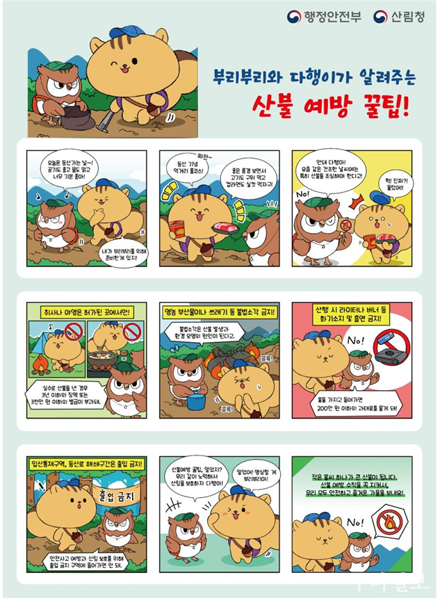 특히 ▴산행 시 화기 소지 금지 ▴취사 및 흡연 등 불씨를 만드는 행위 금지 ▴불씨를 발견할 경우 즉시 119 또는 112에 신고하는 등 산불예방 수칙을 반드시 실천해 줄 것을 거듭 당부했다.