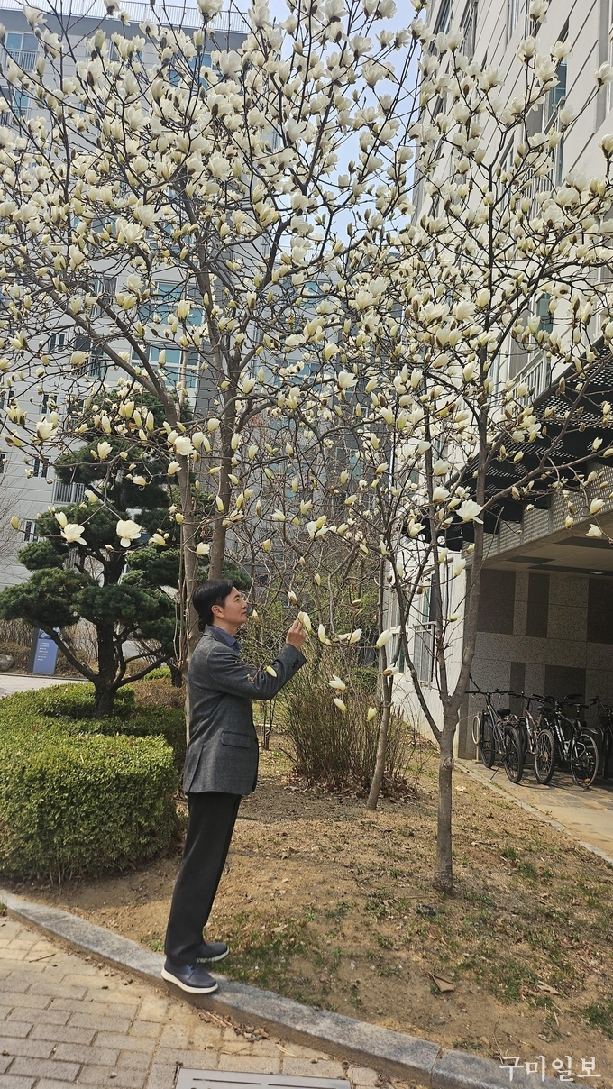 오랜만에 아파트 앞에서 길고 차가운 겨울을 이기고 활짝 핀 목련꽃을 바라보고 있습니다. 지난 1월, 바로 이 자리에서 “흔들리지만 흔들리지 않는 삶 그리고 구미”라는 글을 올렸지요. 당시 잔뜩 움츠린 목련을 보며 시간이 지나고 계절이 바뀌면 반드시 꽃이 필 것이라는 믿음을 가지고 기다렸습니다. 오늘 하얀 목련꽃이 활짝 핀 모습을 보니 반가운 마음과 함께 제 인생의 한 장면이 떠올랐습니다.