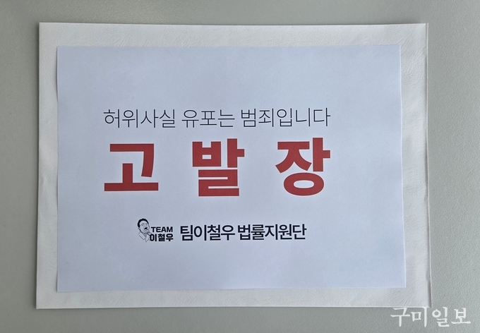 이철우 캠프 법률지원단 관계자는 4월 1일, 네이버 밴드 등 SNS상에서 활동하며 이 후보를 비방할 목적으로 가짜뉴스를 지속적으로 유포해 온 신원미상의 인물 2명을 ‘공직선거법 위반(허위사실공표죄)’ 및 ‘정보통신망 이용촉진 및 정보보호 등에 관한 법률 위반(명예훼손)’ 혐의로 경상북도경찰청에 고발장을 접수했다.