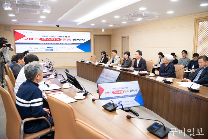 구미시가 병원급 이상 의료기관 9곳과 손잡고 「구미愛 주소갖기 운동」을 본격 추진하기로 했다. 전체 직원의 80~90%를 구미시 주소로 전환하겠다는 목표를 세우고, 인구 41만 회복을 위한 실질적 동행에 나섰다.