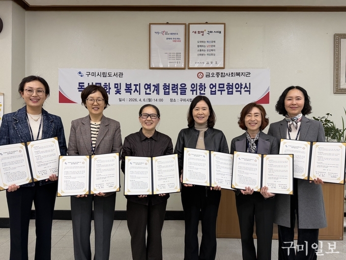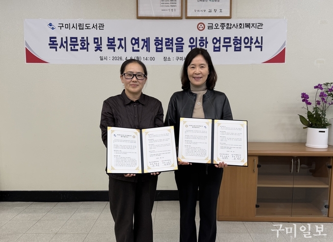 구미시립중앙도서관은 6일 시립중앙도서관에서 금오종합사회복지관과 지역사회 독서문화 확산과 복지 증진을 위한 업무협약(MOU)을 체결했다.