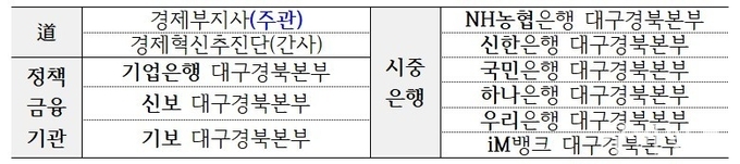 협의체는 경상북도와 정책금융기관 그리고 대구·경북 시중은행 지역본부로 구성되었으며, ▲ 정책금융(국민성장펀드, 지역활성화투자펀드 등) 지원 ▲ 지역기업 지원(여신, 네트워킹, 컨설팅 등) ▲ 프로젝트 기획 ▲ 경제현안 논의에 있어 협업하여 시너지를 창출하기 위한 취지로 출범했다.