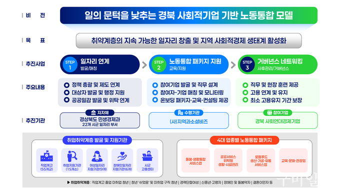 이번 사업은 사회연대경제기업을 중심으로 돌봄과 일자리를 함께 해결하는 지역 구조를 만들고, 이를 통해 사회적 가치가 선순환하는 지속 가능한 “경북형 지역 생태계” 구축을 목표로 추진한다.