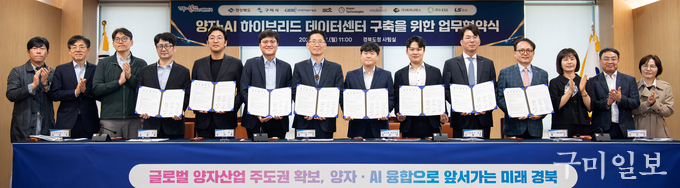 구미시는 4월 27일 경북도청에서 경상북도, ㈜SDT, 구미전자정보기술원, 모빌린트, Anyon Technologies, ㈜마키나락스, ㈜I-ESG, LS증권 등 기술·투자·행정 분야 9개 핵심 기관과 「양자·AI 하이브리드 데이터센터 구축을 위한 업무협약(MOU)」을 체결했다고 밝혔다.