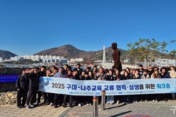 구미교육지원청(교육장 민병도)은 구미시학교운영위원장협의회(회장 김민욱)와 11월 25일(화) 구미시복합스포츠센터에서 관내 각급학교장, 행정실장, 학교운영위원 등 약 500명이 참석한 가운데 ‘2025년 구미시 학교운영위원회 화합 한마당 워크숍’을 개최했다. 이번 워크숍은 구미 지역 교육공동체가 한자리에 모여 교육 현안을 공유하고 상호 협력 기반을 다지기 위해 매년 열리는 대표적인 행사로, 올해도 많은 관심과 기대 속에 성황리에 진행되었으며, 임종식 교육감과 도의원, 구미시 관계자 등 주요 내빈이 참석하여 자리를 빛냈다. 따뜻한 감동과 화합의 분위기를 전달하는 선주초등학교 합창단의 축하 공연을 시작으로, 구미교육 발전에 기여한 공로자에 대한 표창 수여와 관내 학교운영위원들이 함께 참여한 화합 한마당 프로그램을 통해 함께 교류하고 협력하는 시간을 가졌으며, 경품 추첨 등 다양한 순서가 진행되었다. 올해는 특히 참여와 교류 중심의 프로그램을 확대하여 학교 구성원 간 소통의 폭을 넓혔다. 민병도 교육장은 “이번 행사가 학교장, 행정실장, 학교운영위원 등 교육 현장을 이끌어가는 주체들이 서로의 경험과 전문성을 공유하고 협력하는 의미 있는 시간이 되었기를 바란다”며,