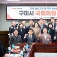 구미시는 2월 26일 국회에서 구자근, 강명구 지역구 국회의원과 김장호 시장을 비롯한 시 주요 간부 공무원 등 30여 명이 참석한 가운데 지역 주요 현안 해결과 국비 확보를 위한 국회의원 간담회를 개최했다. 이번 간담회는 지난 2월 6일 개최된 ‘2027년 국가투자예산 확보 전략보고회’에서 발굴된 핵심 사업들이 정부 예산안에 실질적으로 반영될 수 있도록 국회 차원의 협력 체계를 강화하기 위해 마련됐다. 특히 구미시는 정부 국정과제인 ‘5극 3특’초광역 협력 전략과 지방시대 실현 기조에 선제적으로 대응하며, 반도체·방위산업·AI 제조 등 미래 첨단산업과 SOC 기반 확충에 대한 협력 방안을 논의하고 전략을 공유하는 데 초점을 맞췄다. 주요 현안 사업으로는 ▲구미~신공항 철도 및 동구미역 신설을 통한 광역 교통망 확충과 정주 여건 개선 ▲반도체 소재·부품 Complex 구축 및 방위산업 소재·부품·장비 특화단지 유치 등 미래 먹거리 확보 ▲대한민국 역사박물관 유치와 낙동강 수변레저파크 조성을 통한낭만도시 구현 ▲대도시 기준 완화 및 구미 경제자유구역 지정 등 국가 균형 발전의 토대 마련 등을 논의했다. 주요 국비 사업으로는 ▲AI·방산 특화 공유공장 구축 ▲국립